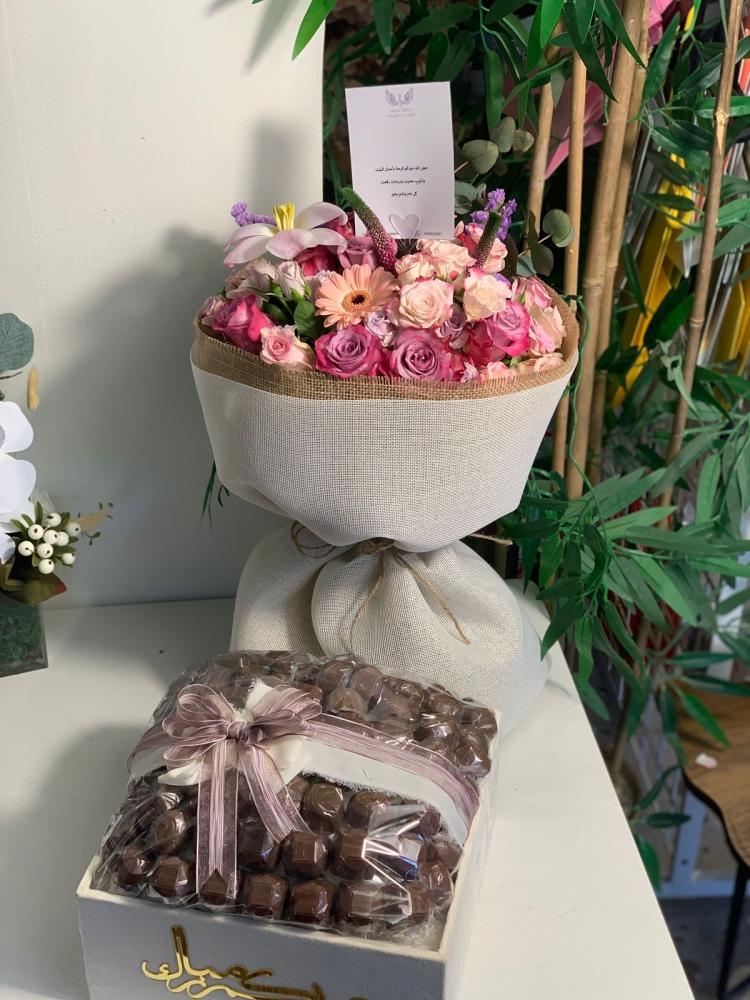 ✨ باقة ورد راقية بتنسيق أنيق يجمع بين درجات الوردي الناعمة والزهور الطبيعية المختارة بعناية لتكون هدية مثالية تعبّر عن مشاعرك بكل حب ودفء.